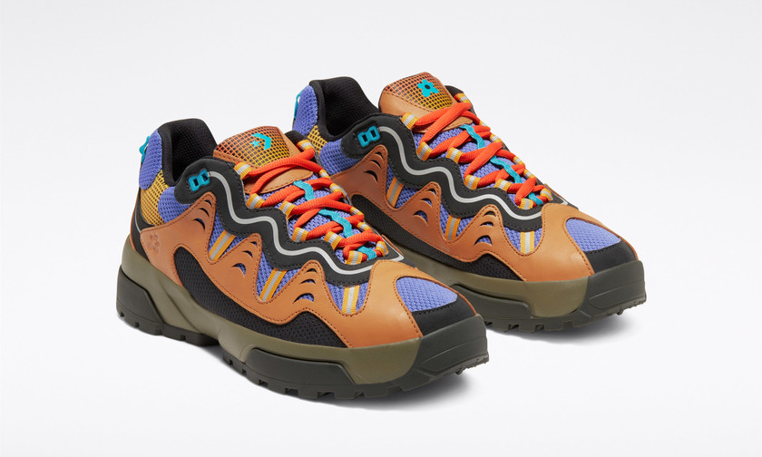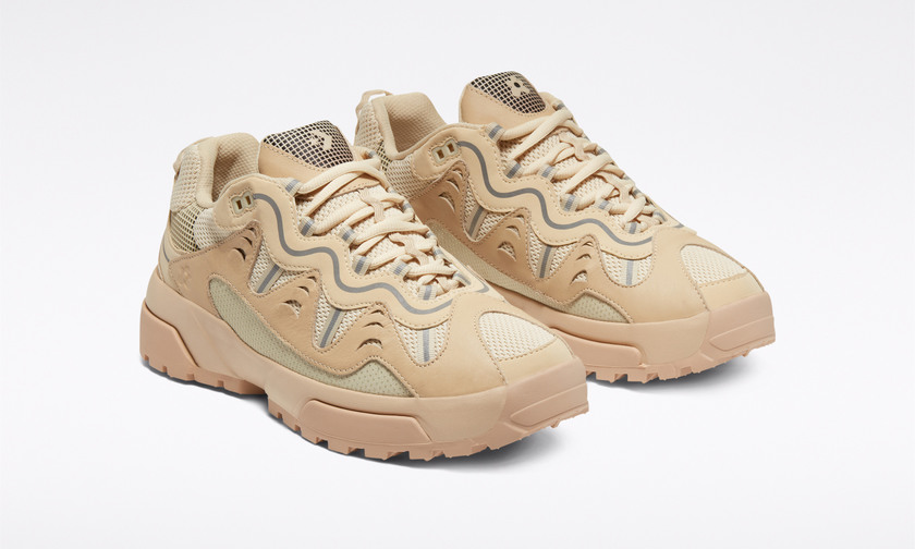 这款全新联名配色以粉色帆布鞋面示人,粉蓝色圆形徽标、小花 logo 以及摇粒绒 GOLF le FLEUR* 的点缀,呈现出极其清新的视觉。最后搭载米白色鞋底,氛围可爱柔和又充满少女心。