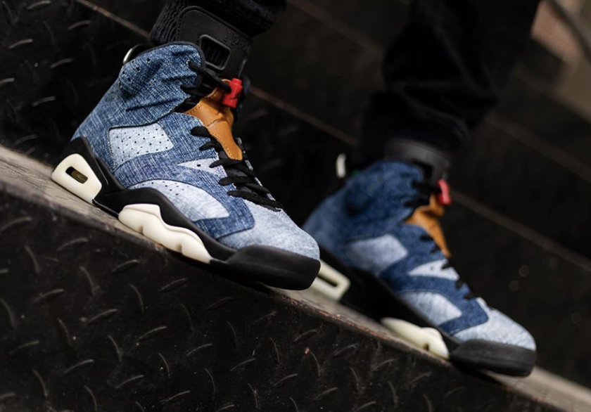 然后让我们再看一下丹宁面料。自两年多以前Levis和Jordan Brand联名推出了AJ4之后,Jordan显然感觉吃到了甜头,丹宁在鞋款上呈现出的质感也是别具一格。近期网上也是曝出了一款全新的Air Jordan 6 “Washed Denim”,极佳的品质甚至让人以为两者之间又做了一次联名。