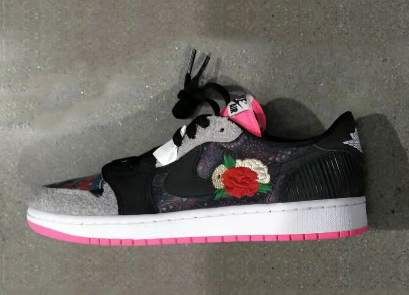 这款 Air Jordan 1 Low CNY 以灰黑色和粉色主打,左右鞋款不对称设计抢眼度爆棚。