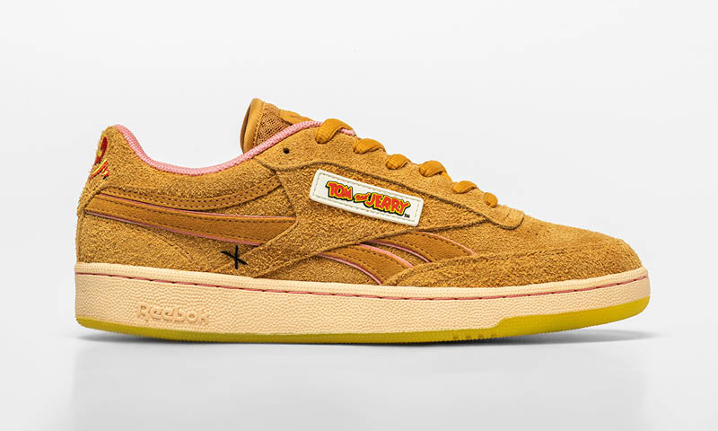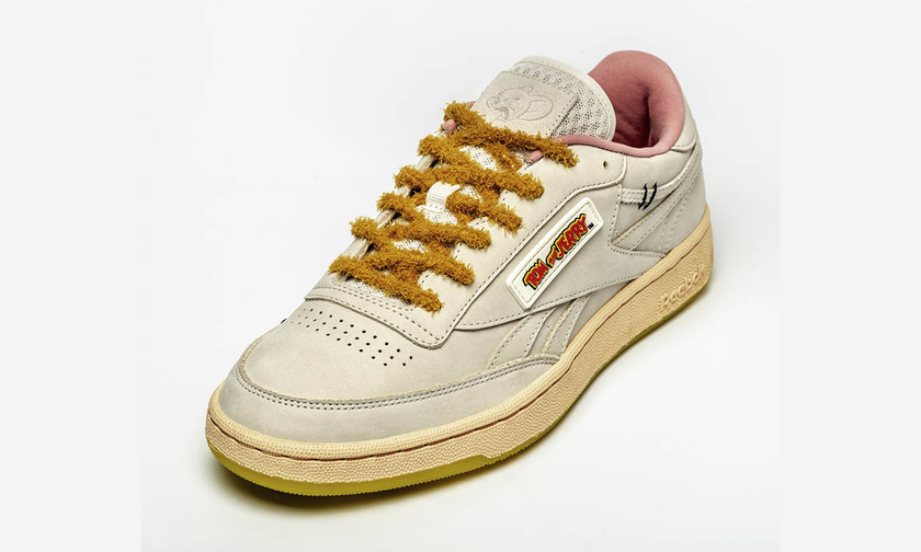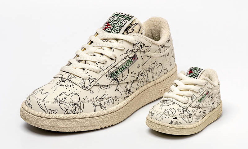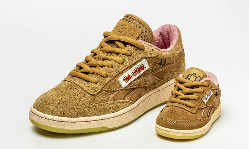 而鞋迷们最关注的鞋款,则以 InstaPump Fury、Club C、Club C Revenge 3 款鞋型为蓝本塑造。皮革、麂皮、翻毛皮材质的注入,融合可爱的猫和老鼠经典形象,以及动画中猫鼠相爱相杀的场景,逼真玩味又富有童趣。