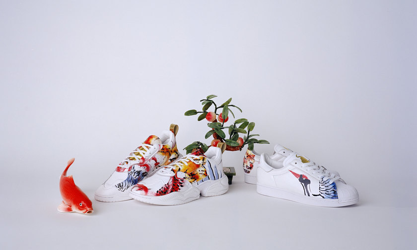在鞋面上都以水墨画风格呈现了在中国寓意特别的锦鲤、老虎、仙鹤、海棠等各种图案。这一类似的中国风尝试之前adidas就有尝试,例如青花瓷系列的Rivalry。稍显可惜的是,这次呈现的系列中ACU x Superstar是特别的亲友限定,不做市售。