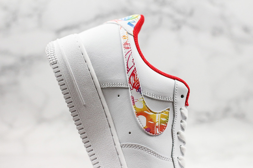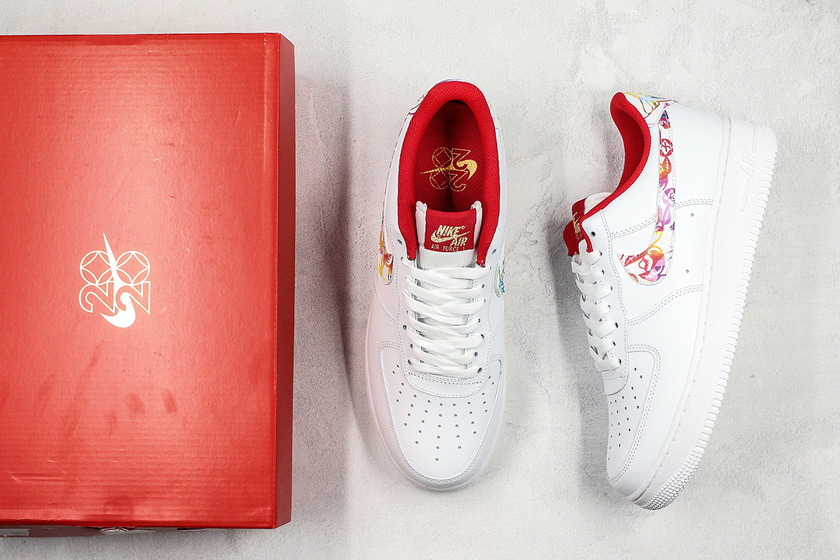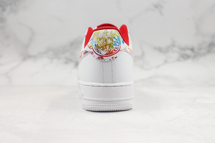 这双全新的AF1 Low CNY在近期刚刚曝光,实物图片并不多。不过我们可以看到一席白色为主的鞋身非常清新也很百搭,除了使用颇具节日气息的红色做内侧之外,我们可以看到在Swoosh和后跟位置采用了七彩色的图案呈现,似乎还参考了剪纸一类的设计。考虑到以往CNY系列的AF1质量都非常不错,这双鞋绝对值得期待。