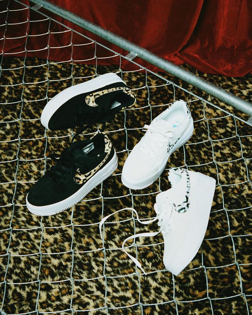 而其中鞋迷们最关注的鞋款是以 Air Force 1 为蓝本塑造的,共有纯黑、纯白两款配色。豹纹 Swoosh 与后跟为整款鞋带来了个性与活力。