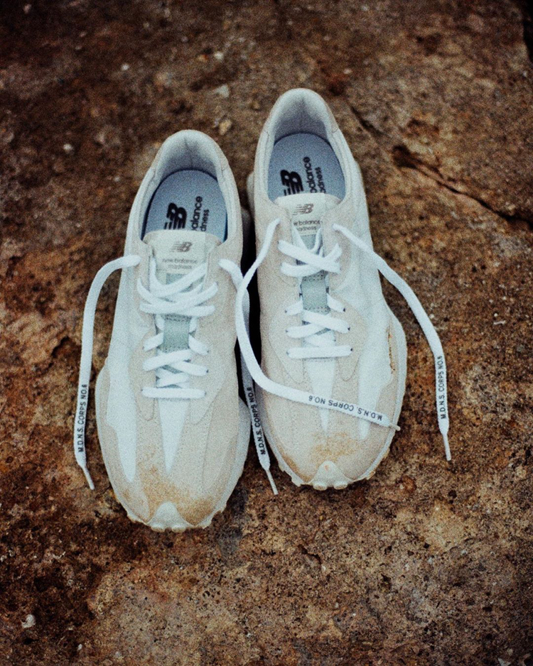 另外两双在 MADNESS 2020SS 系列型录中出现的,是以New Balance 327为原型塑造的,鞋带处 MDNS CORPS NO. 字样彰显联名身份。