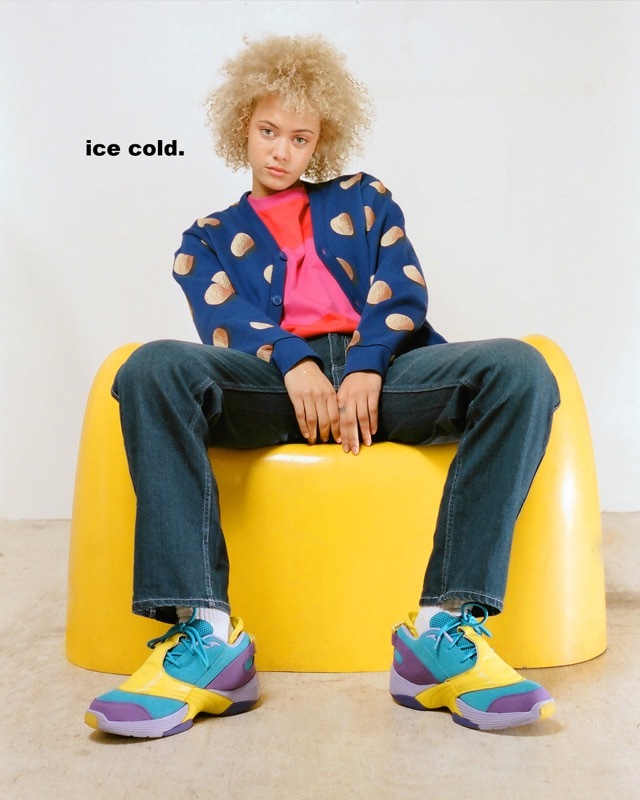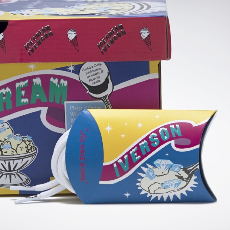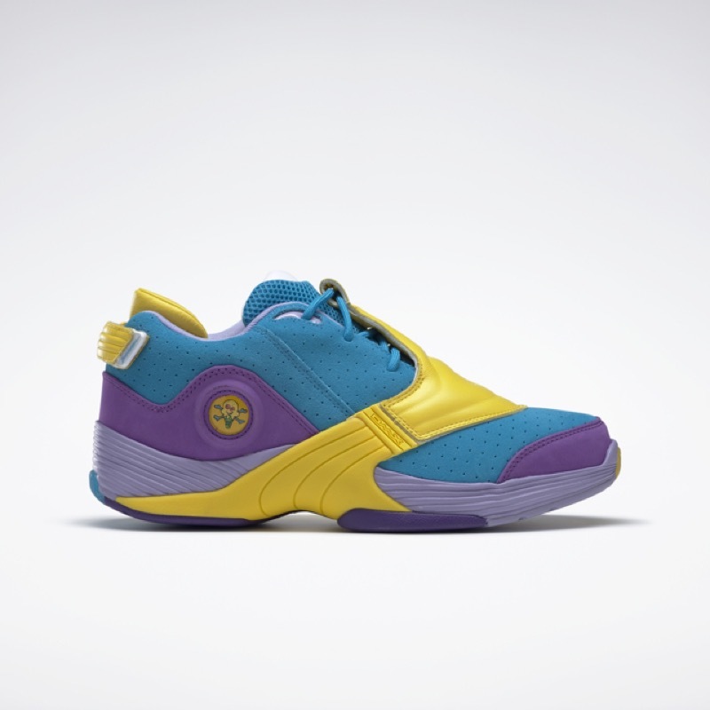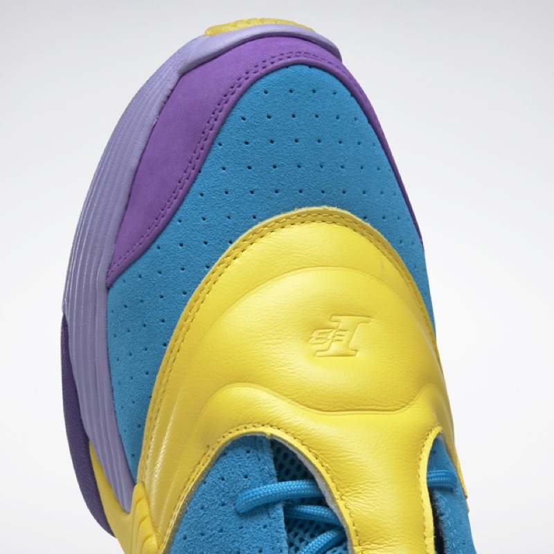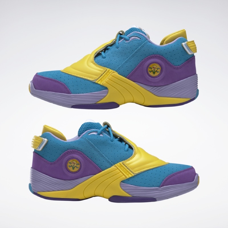 系列包括 Reebok Answer V 与 BB4000 篮球鞋。其中 Reebok Answer V 以黄蓝紫三种色调撞色拼接呈现。猫眼处的 ICE CREAM 经典冰激凌骷髅标志取代 Answer V 同样经典的 I3 logo 标签,玩味十足。