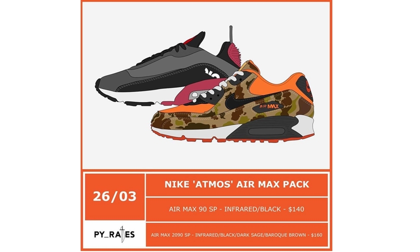 为迎接即将到来的 Air Max Day ,日本球鞋名所 atmos 联手 Nike 打造了全新联名系列。系列由球鞋情报账号 @py_rates 曝光,将包括 Nike Air Max 90 与全新 Nike Air Max 2090 两款球鞋。