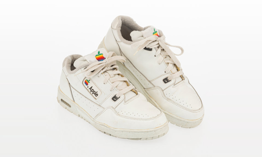 在电子领域苹果产品属于数一数二的存在,但在运动鞋方面,相信很少有人知道,苹果也出过运动鞋。就是下图的这一款,是 90 年代苹果公司设计制造的,当时只当做员工礼物送出,并没有市售。而最近,在Heritage Auctions 上,一双 9.5 码的这款运动鞋竟以9,687.5 美元的最终价格成交,让人颇为震惊,可见鬼罕的运动鞋潜力也是无限的。