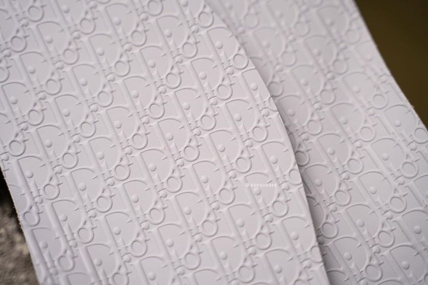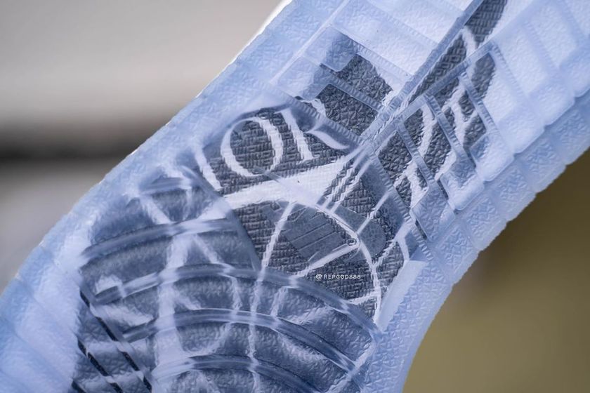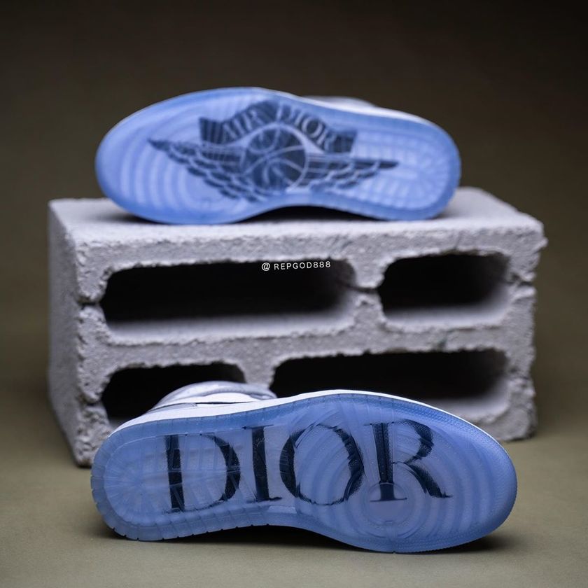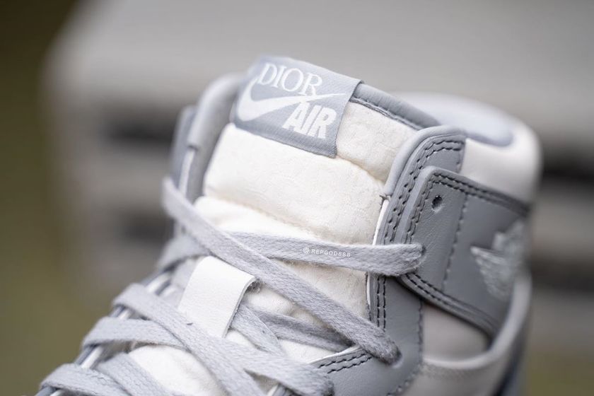 鞋舌处原本 AJ 1 的 Nike Air 标志以及鞋帮处飞翼上原本的 Air Jordan 改为了 Dior Air 以及 Air Dior ,与鞋垫鞋底的标志呼应,彰显联名身份。