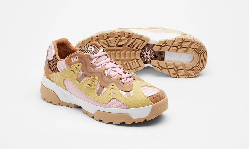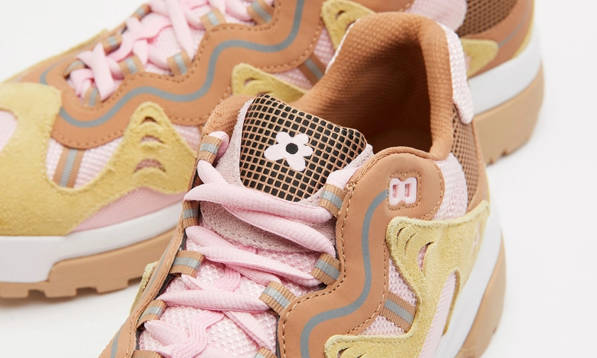 此番,延续该联名系列设计,双方又将推出两款新配色。新配色分别以卡其色/粉色,以及米白/蓝色组合呈现。麂皮、皮革、网布材质拼接,层次感丰富,质感出众,相信会是春季绝佳上脚鞋款之一。