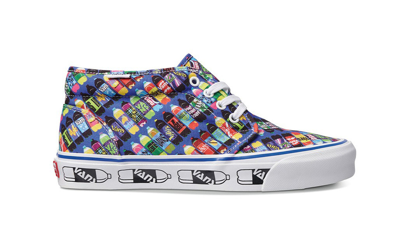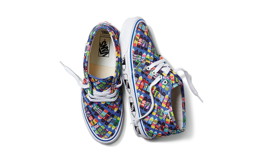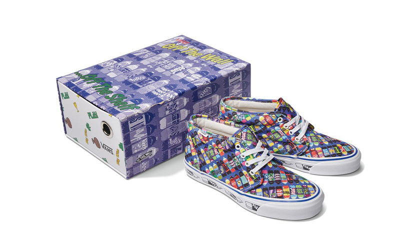 最近 Vans 联手著名平面艺术家 Fergadelic 带来了全新联名作品。本次联名以“Corner Shop Drink”为主题,采用 Vans 经典的 Vault OG Chukka LX 和 Authentic LX 鞋款为原型设计。