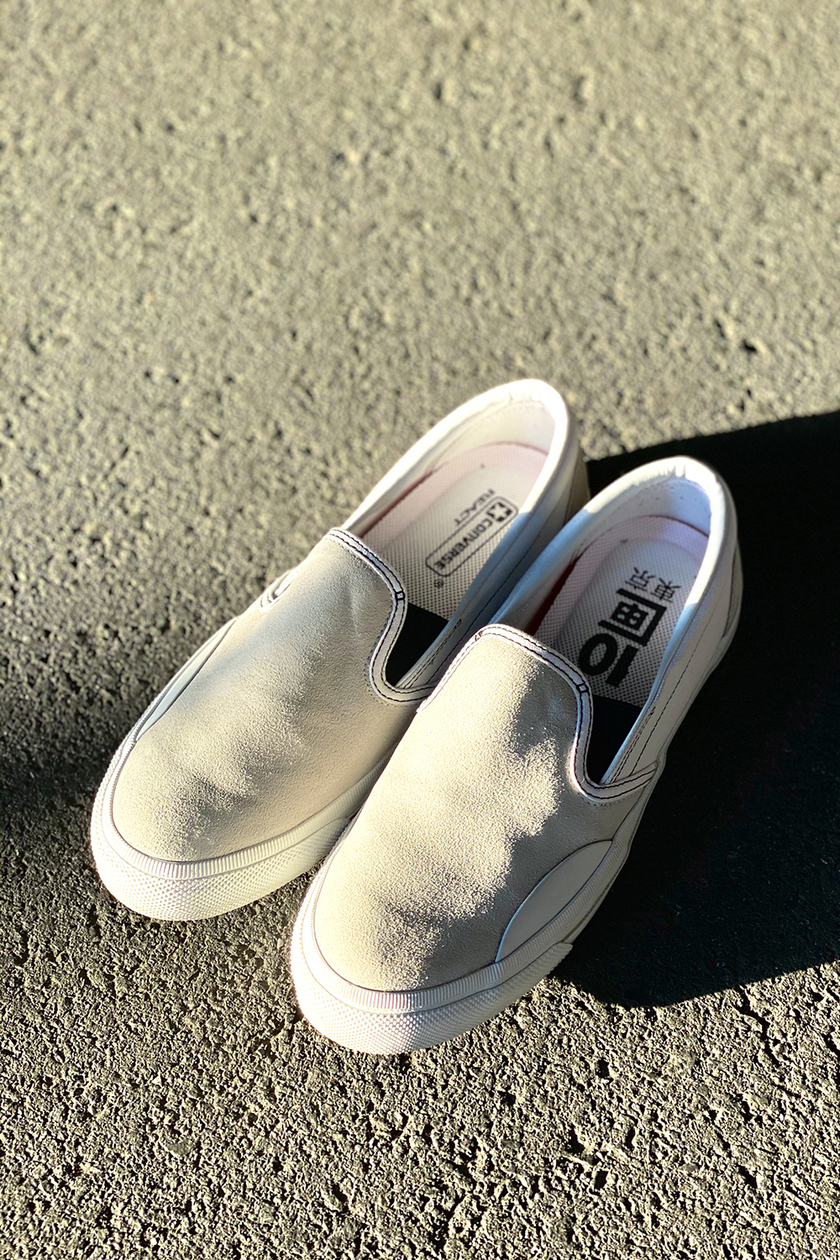此番双方带来 2.0 版本,不知会有怎样的表现。依旧选用 Skidgrip Slip-On 为基调,这次联名采用全白配色搭配黑色点缀呈现。鞋垫上“10 匣”、“東京”字样点缀,表明联名身份,辨识度极高。