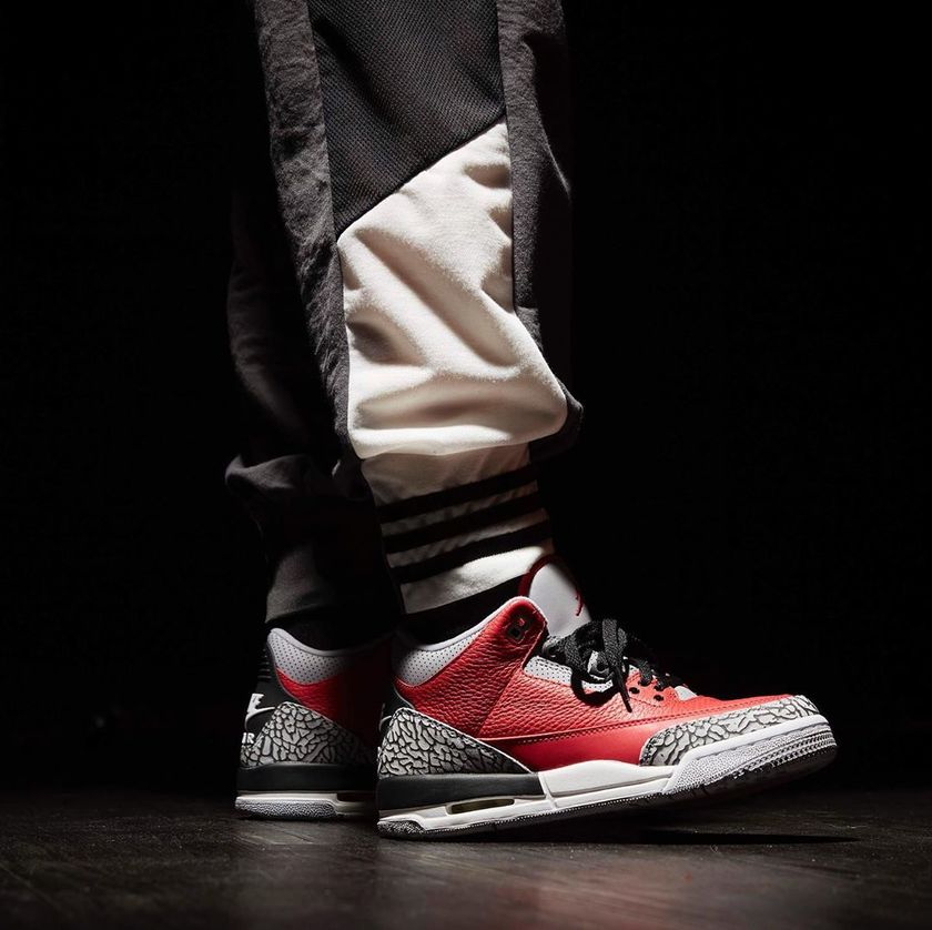 今年AJ3就继续在AJ3上展开大胆尝试,将经典的黑水泥配色鞋款进行改变,使用了非常显眼的大红色代替。红水泥配色就这样诞生,保留了爆裂纹的基础上,对经典OG配色进行改变的设计这几年其实非常多见,但收效往往并不高。很容易造成,老鞋迷看不惯,新鞋迷不喜欢的情况。