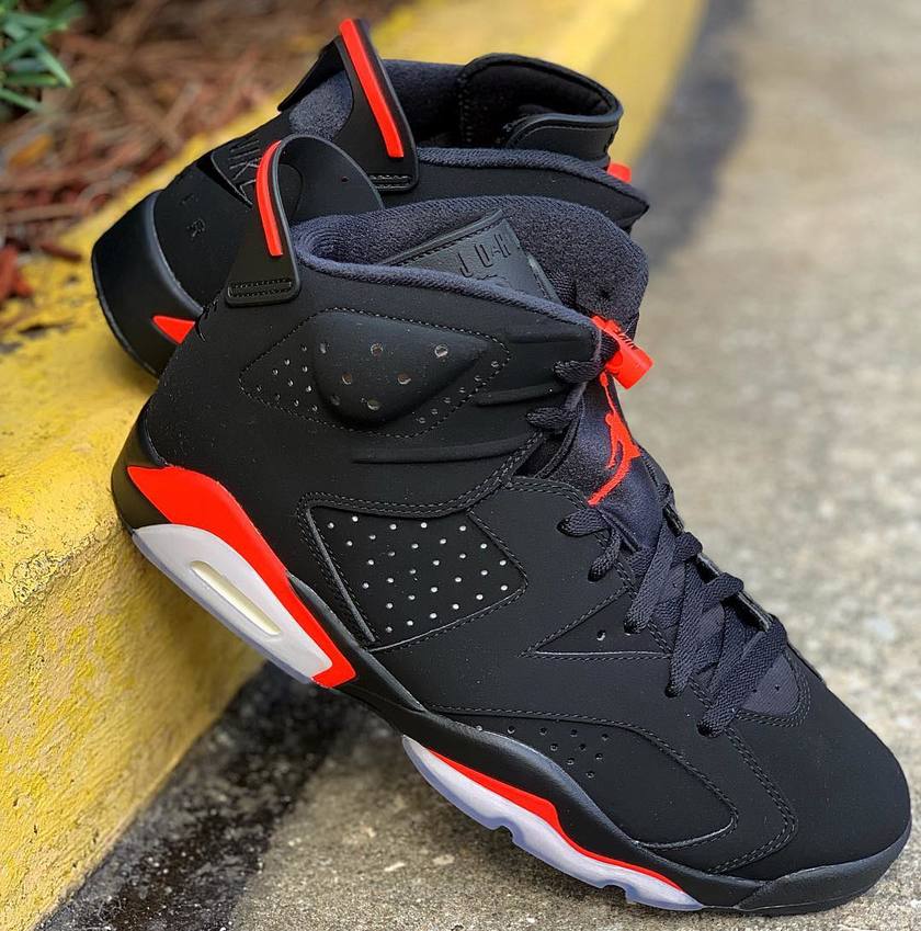 然后再来说说AJ6,今年和去年各有一款该鞋型的重磅配色,分别是Bred和DMP配色。配色本身而言都是经典中的经典,Bred黑红可以说是一代人少年时心中最经典的配色,每逢发售都是抢手款。在去年年底一经发售就瞬间无货,价格长期定于2000+元。