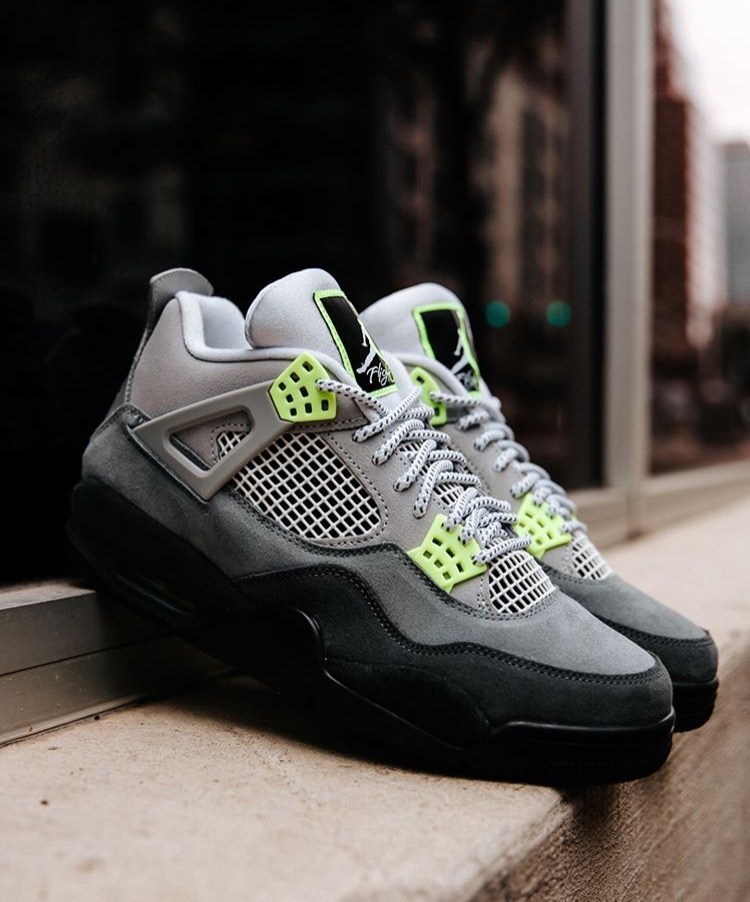 这款配色对于大多数鞋迷来说相信再熟悉不过了,经典的Air Max 95配色Neon在亚洲范围内有着极高的人气,这次移植到AJ4上可以说是再合适不过了。Neon以灰黑渐变色为主,风格十分百搭,同时将Air Max 95标志性的层次感也完美还原。