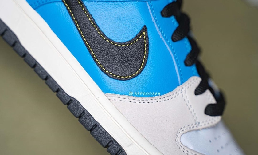 整双鞋采用清爽的白蓝色调撞色拼接而成,并饰以黑色 Swoosh 以及后跟细节点缀。 instant 标志性的“狗头 logo”刺绣出现在后跟,极其醒目,彰显了特殊联名身份。