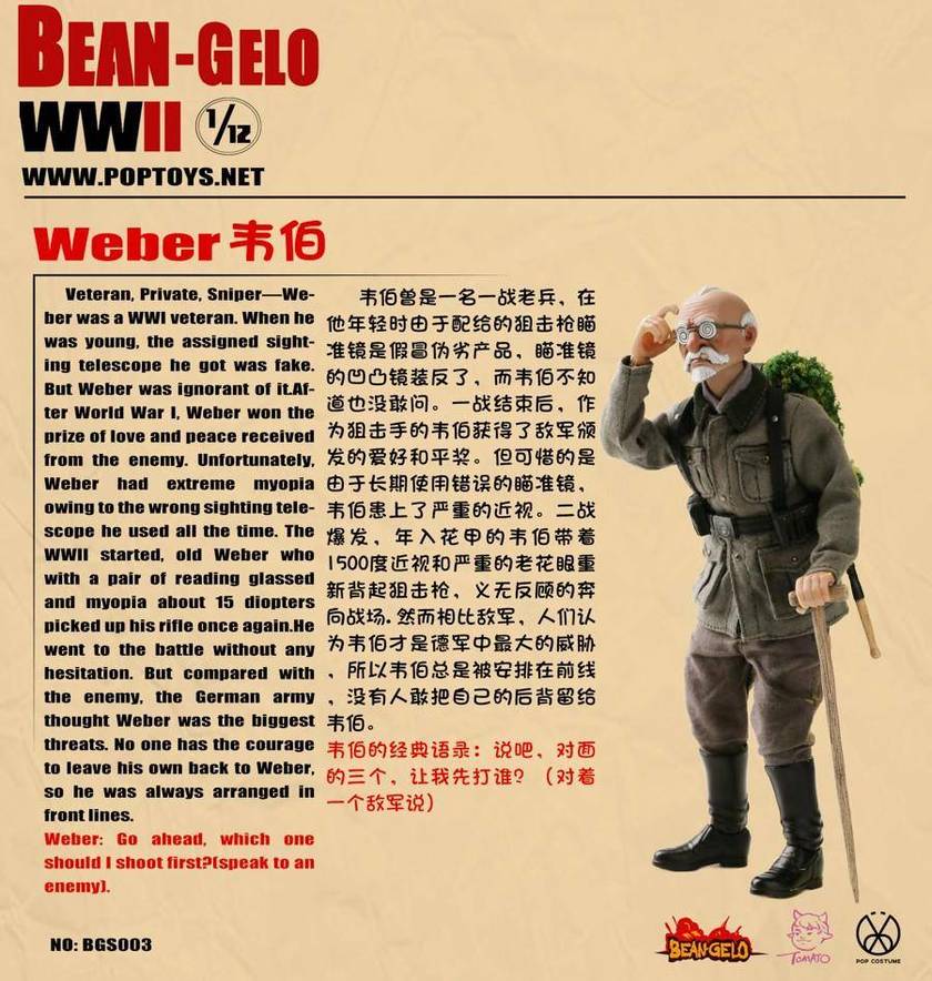 POPTOYS在近期推出了全新的大头兵系列,每个人物的设计都颇具特色。近期就又有一款狙击手老头韦伯的模型制作,带着高倍数眼镜和拄拐的造型都相当有趣,此外还有小羊时刻跟随带来满满战争反差感。喜欢的朋友可以关注一下,该作将于近期发售。