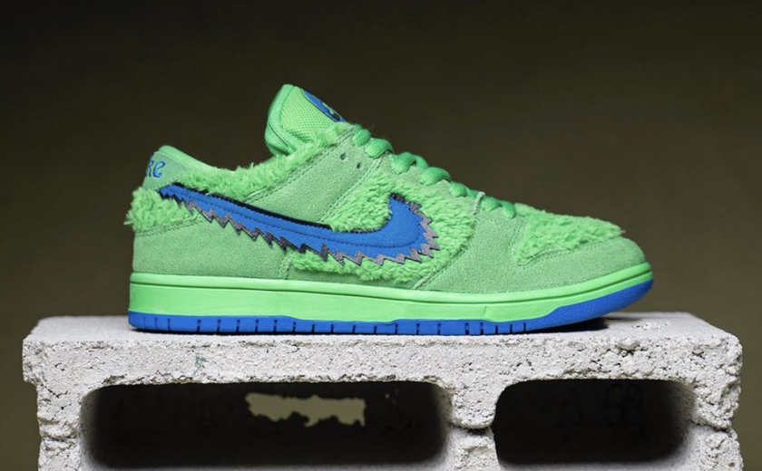 继绿色小熊 Dunk Low 联名曝光以后,Nike 与摇滚乐队 Grateful Dead 的另一款联名 SB Dunk Low 也曝光了。