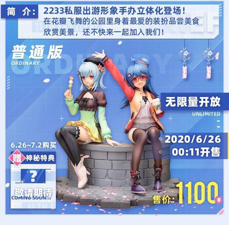 APEX-TOY在近期为b站11周年庆典推出了全新手办,角色呈现就选择了b站的封面看板人物22娘和33娘。设计上选择了私服出游造型,售价1100元,从6月26日到7月2日开始预订,喜欢的朋友可以关注一下。