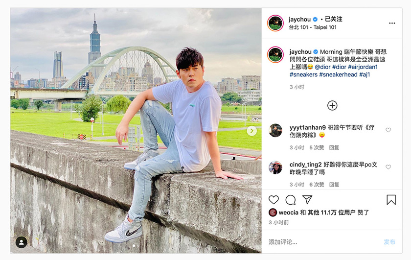周杰伦还附文 “哥想問問各位鞋頭 哥這樣算是全亞洲最速上腳嗎”,“快落”的心情都快溢出屏幕了。