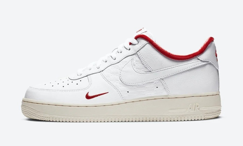 这款联名整体采用白色皮革为主打,红色细节以及天鹅绒材质内衬点缀,尽显复古气质。鞋身 3 段拼接设计,中间采用了菱格凸起的纹理,KITH logo 压印注入,视觉效果简约又百搭,绝对值得入手。喜欢的朋友在发售后可以选择渠道入手。