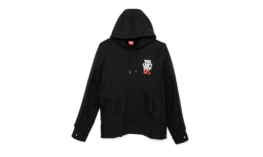 本次联名系列包括连帽卫衣、假两件长袖以及短袖 T 恤等单品。 sacai 经典解构美学以及鲜明而富有视觉张力的“You Can’t Stop Us”印花注入,辨识度与潮流性分外突出。