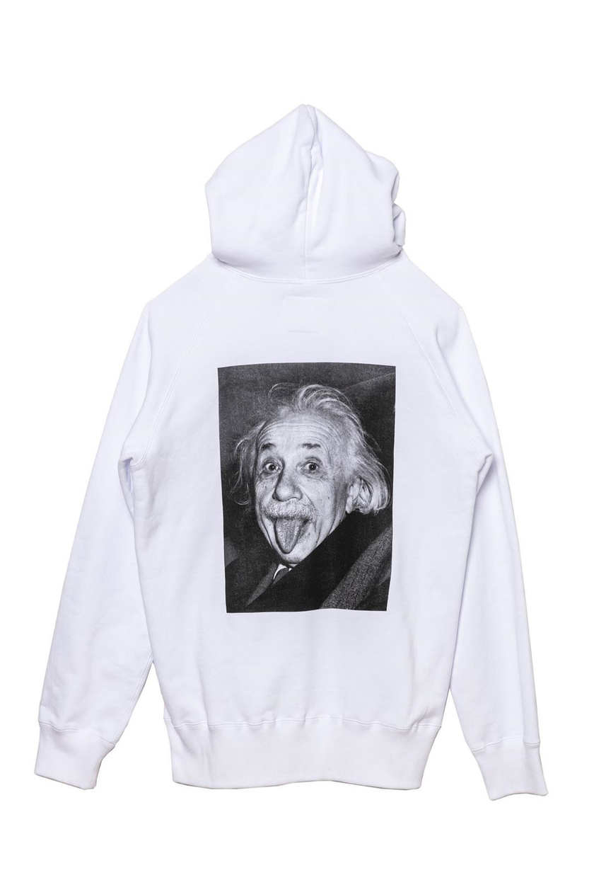 此番,以这张吐舌表情为主打,日本时尚品牌 sacai 带来了全新爱因斯坦胶囊系列。系列包括黑、白 T恤、卫衣在内共计 4 款单品,除了标志性爱因斯坦肖像外,还引用他的名言“I believe in intuitions and inspirations. I sometimes feel that I am right. I do not know that I am.”点缀,辨识度极强。