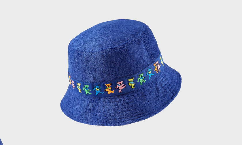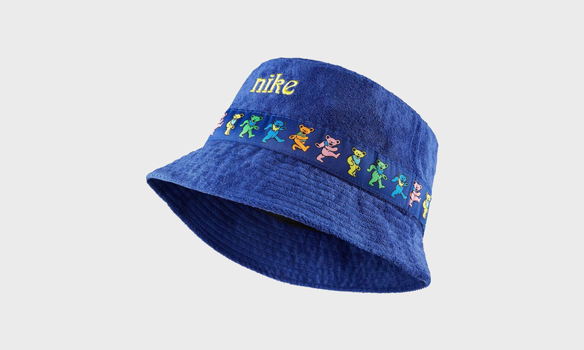 目前这款帽子实物已经在网上曝光,采用舒适、清爽的毛巾毛打造,正面绣有 Nike 字样,同时帽子上还有一圈 Grateful Dead 标志性的 Dancing Bears 形象点缀,辨识度与玩味十足。