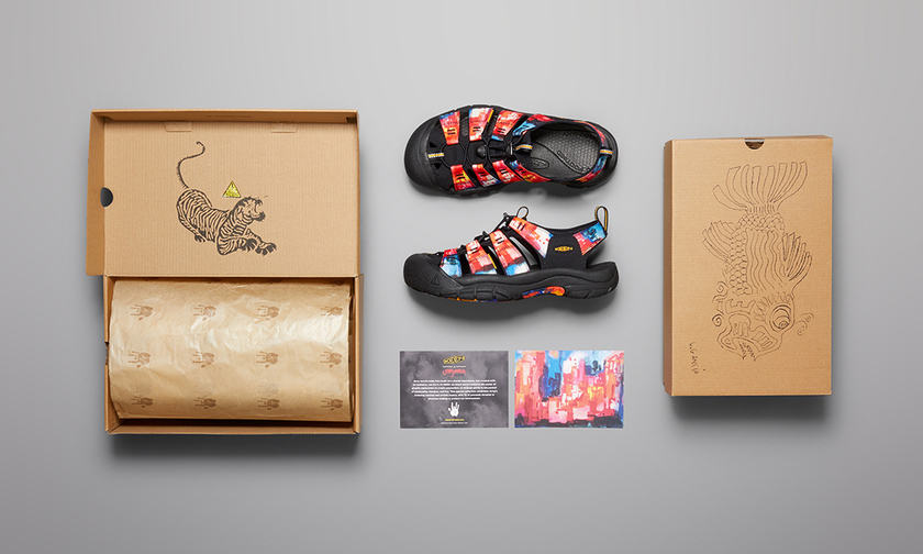 系列以 KEEN 经典的 UNEEK 和 Newport 鞋款为蓝本重塑, Garcia 生前所创作的两幅水彩画《New York At Night》与《 Banyan Tree》的融入,吸睛且极具艺术感。