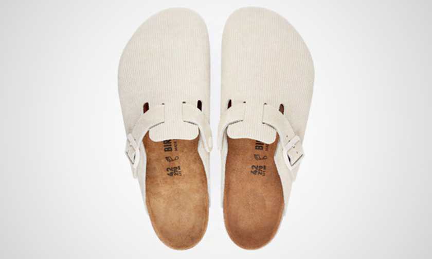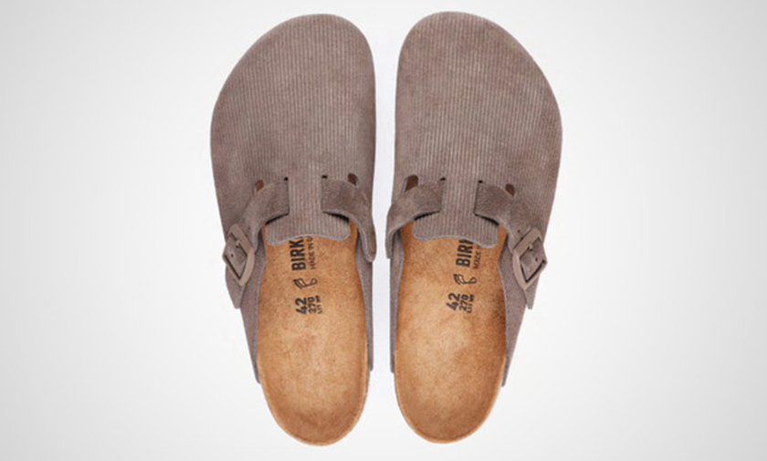 系列以 Birkenstock 旗下辨识度最高的鞋款 Boston 为蓝本重塑,共有浅色「Bone」与深色「Anthracite」两款配色,复古灯芯绒材质代替原有皮质,使整个系列质感高级有格调。