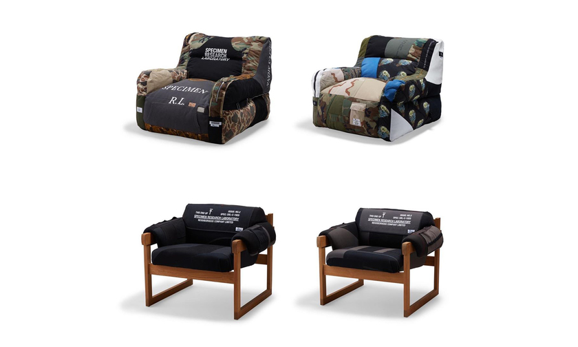 携手擅长旧物改造的 Remake 艺术家 DRx Romanelli ,NEIGHBORHOOD 将于近日推出全新联名系列。系列将 NBHD 支线 SPECIMEN RESEARCH LABORATORY 作为设计主轴,融入品牌 logo 元素及迷彩、扎染和拼接等设计,带来了 T-Shirt、卫衣以及夹克等众多单品。另外,本次联名还包括 Remake 单人沙发和扶手椅等家具单品,将于 9 月 24 日在 GR8 独家发售,有兴趣的朋友可以关注入手。