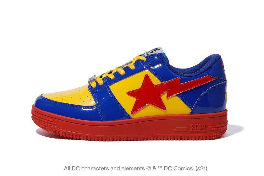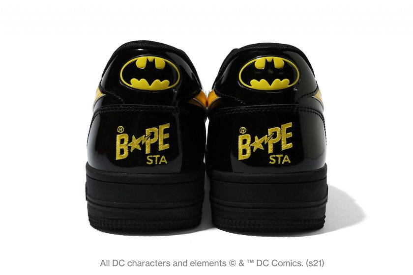 BAPE STA 共有两款,分别以蝙蝠侠和超人标志性色彩点缀,后跟处超级英雄 Logo 图案,表明了联名身份。