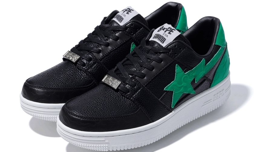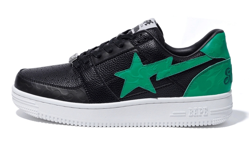 携手美国说唱歌手 Gunna ,潮流品牌 A BATHING APE 于近日推出了全新联名 BAPE STA 。这款联名采用黑绿色调主打,黑色高级皮革拼接带有压印纹理的绿色皮革,质感出众。