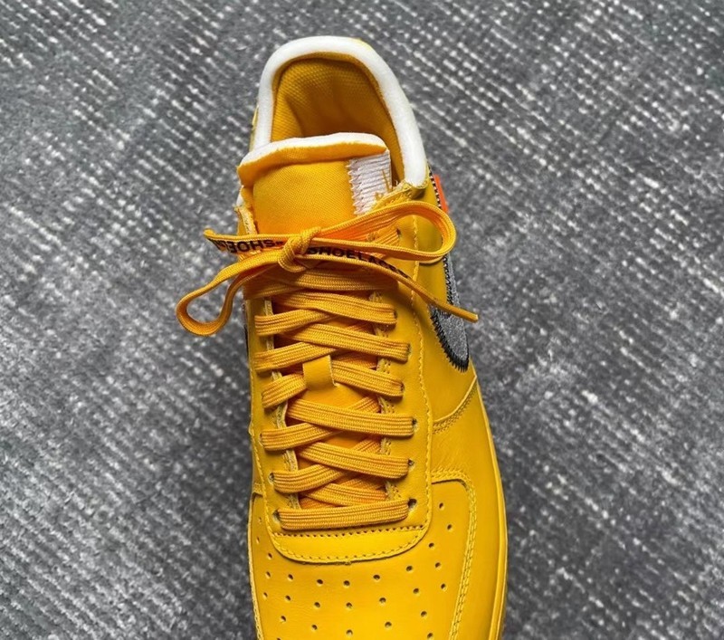 Air Force 1 在 OFF-WHITE x Nike 的系列中绝对是人气最高的鞋款之一,其中蓝色的 OFF-WHITE x Nike Air Force 1 目前市场价格已经达到了人民币 15000 元左右。近期网络上曝光了一双黄色 Air Force 1 的实物图。