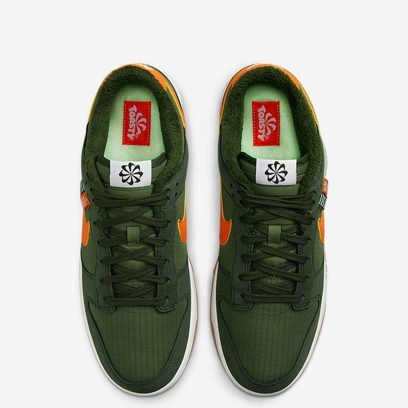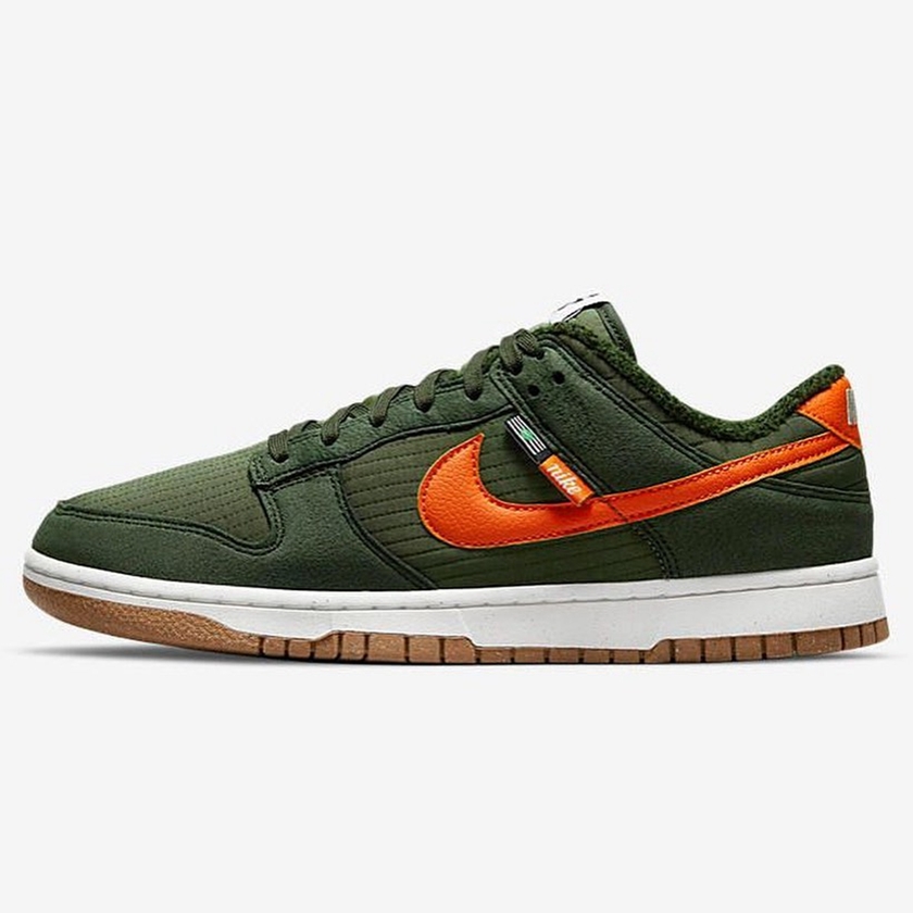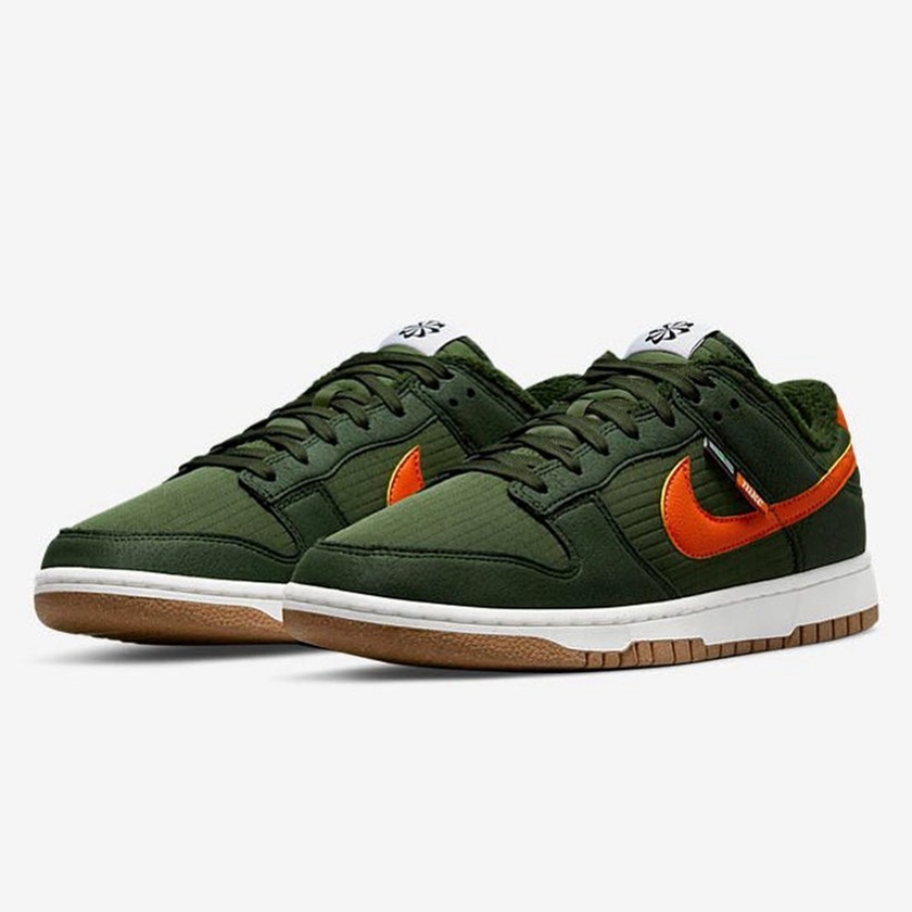 最近一双全新配色的 Nike Dunk Low 曝光了官图。整双鞋采用通体军绿色为主调,搭配亮橙色的 Swoosh Logo 、白色的中底和棕色的外底,视觉效果沉稳又时尚。材质方面鞋面选择了大面积的环保尼,外底则采用了天然橡胶和可回收材质混合制成的橡胶。目前这双全新配色的 Nike Dunk Low 暂时没有公布具体发售信息。