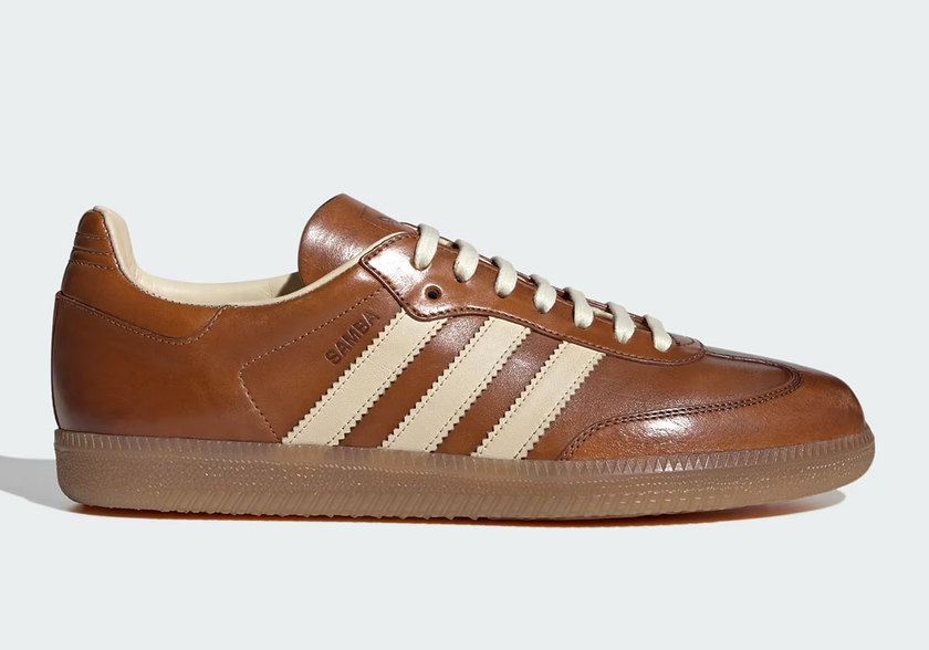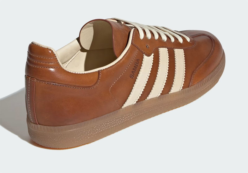 最近一双全新配色的 adidas Samba Made In Italy 公布了官图。整双鞋采用了手工抛光的小牛皮材质打造,以棕色色调呈现,配合米白色的三条杠和内衬,视觉效果十分出众。据悉这双全新的 adidas Samba Made In Italy 已经于10月7日正式发售。
