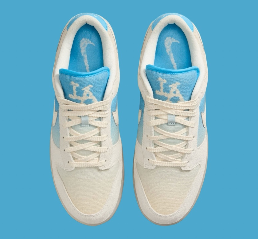 最近一双全新配色的 Nike Dunk Low "LA" 公布了官图。整双鞋采用翻毛皮搭配帆布为主调,白蓝渐变的色彩过渡,鞋舌 LA 则辅以云朵姿态呈现,加之 Swoosh 的棕榈叶刻画,视觉效果十分出众。据悉这双全新的 Nike Dunk Low "LA" 将于 10 月 26 日在美区率先发售。